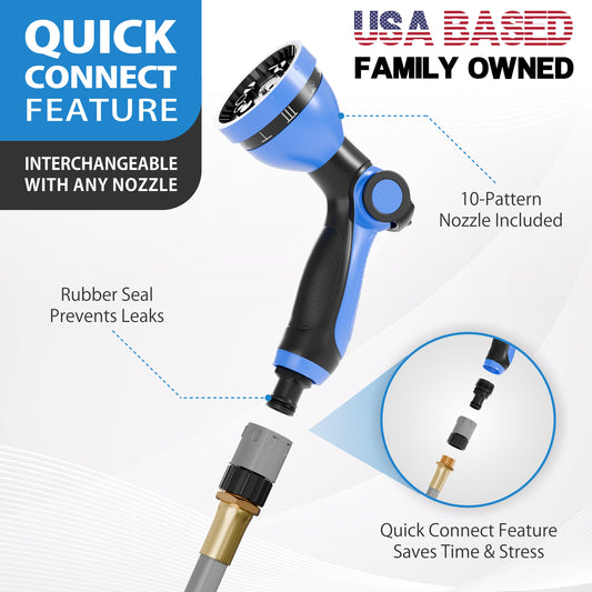 Retractable Garden Hose Reel, Quick Connect With 10-Pattern Nozzle