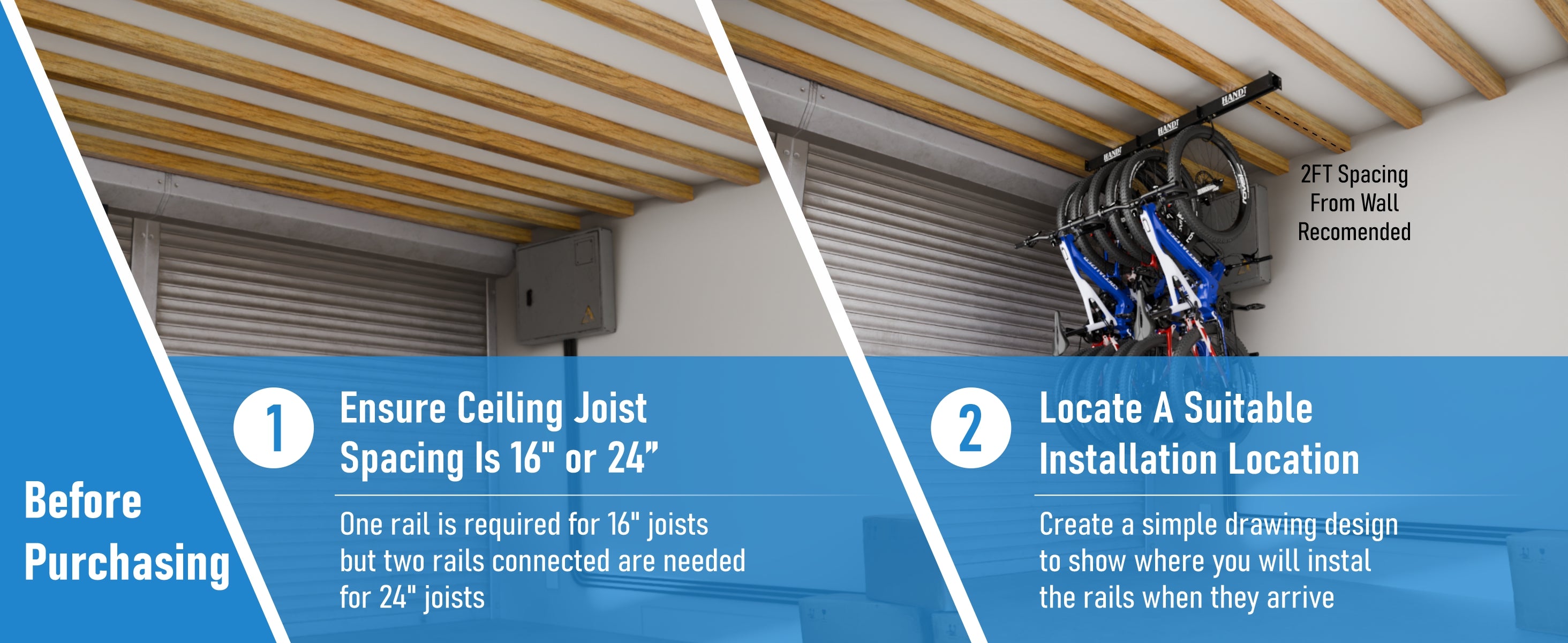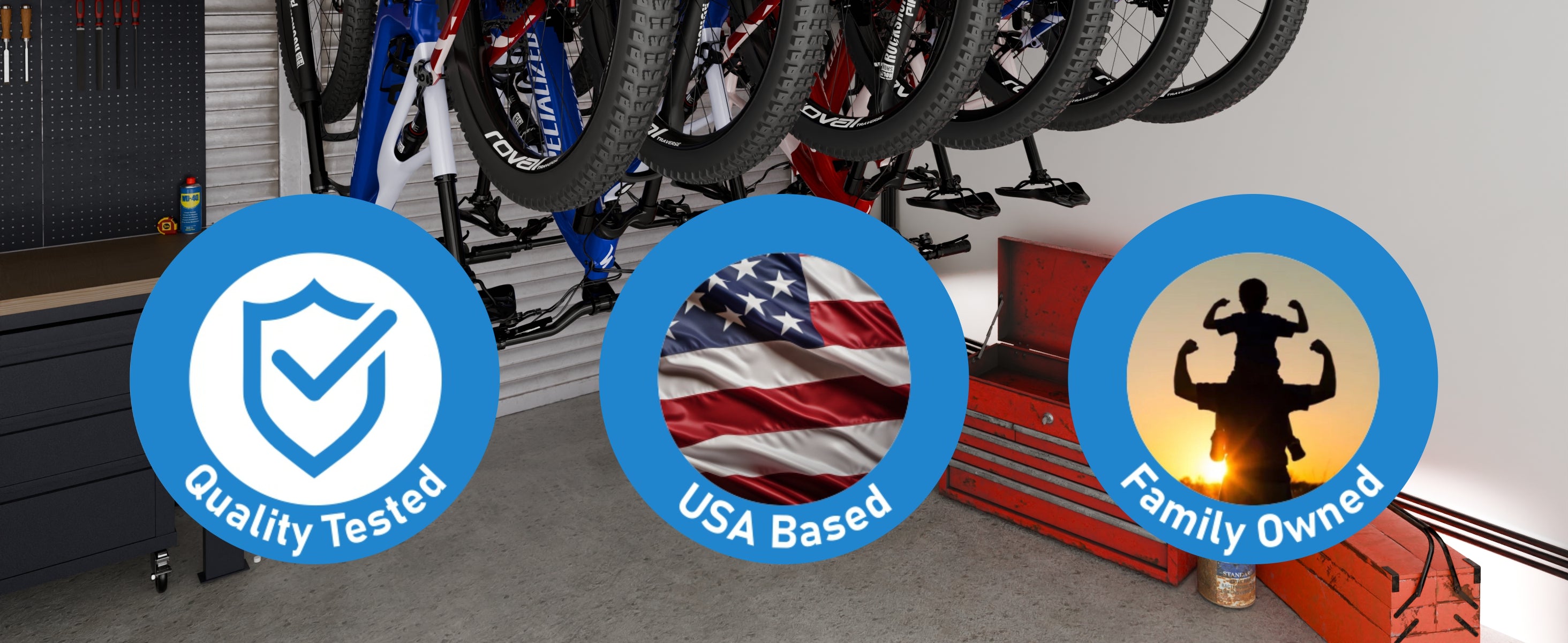 - USA Based & Family Owned - As a Father and Son Tradesmen, the ceiling bike rack mount has been the perfect handy bike ceiling mount for garage spaces